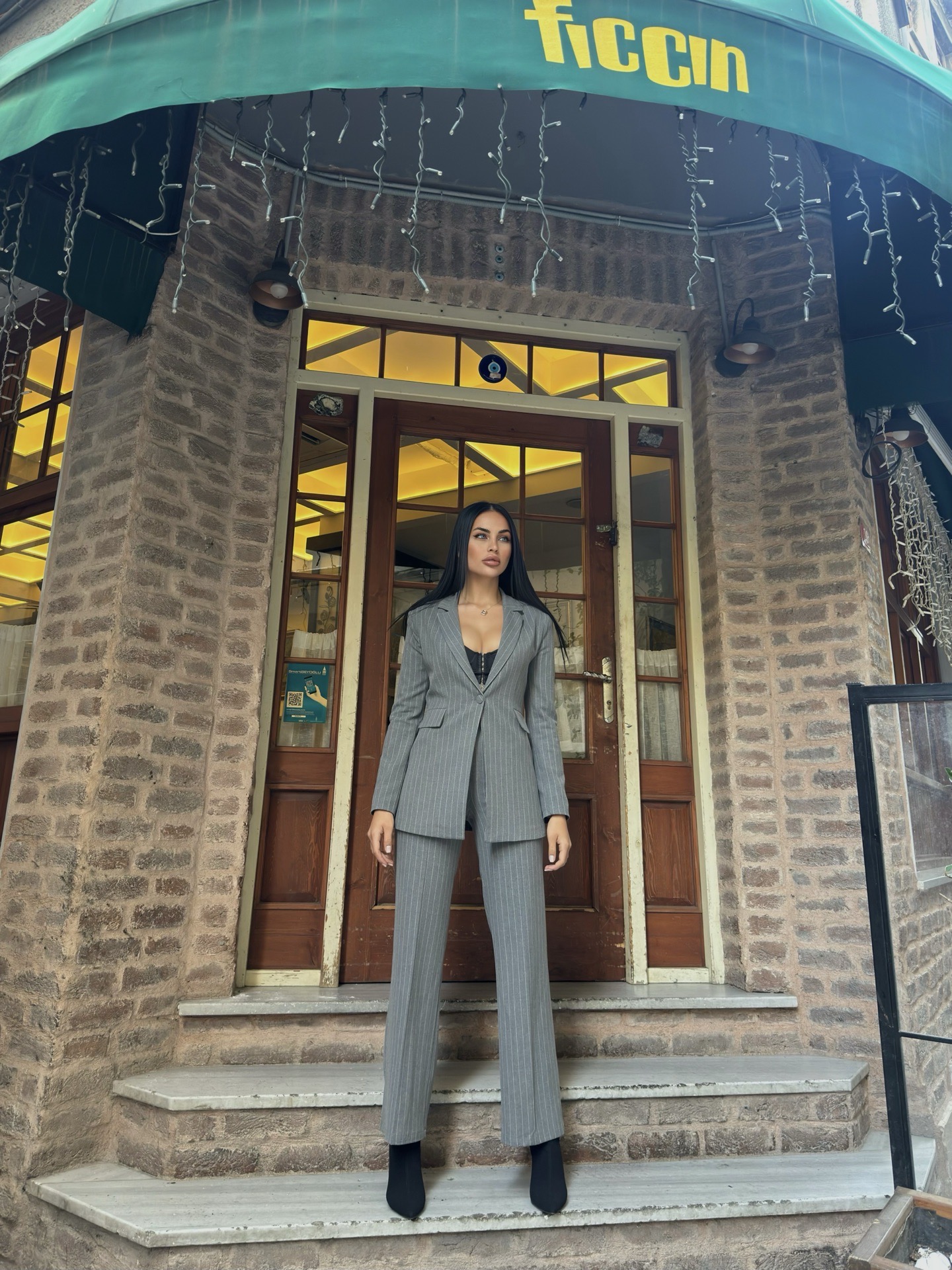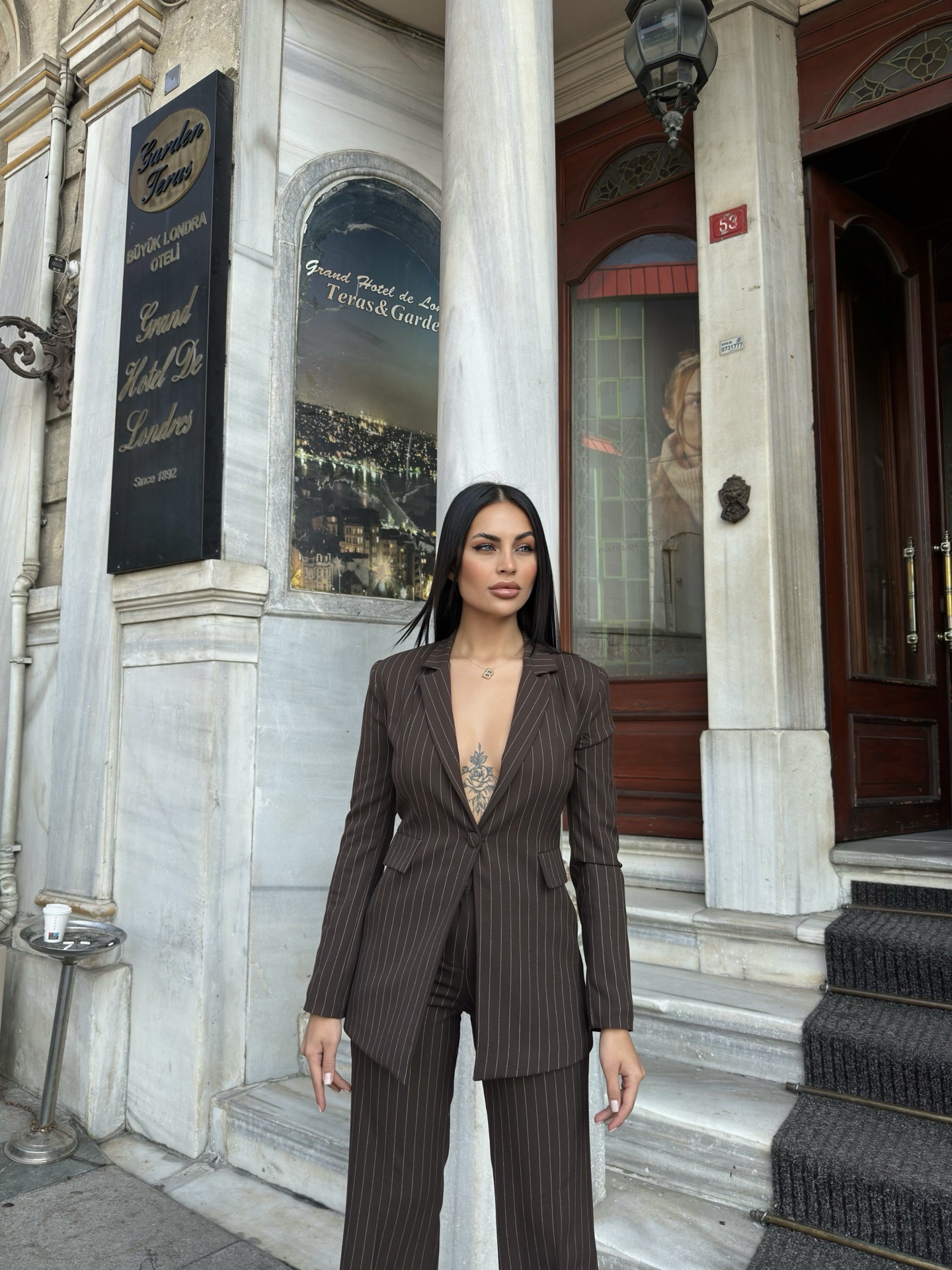 Kadın Düğmeli Palazzo Pantolonlu Takım Elbise - Tekstilciyim.com