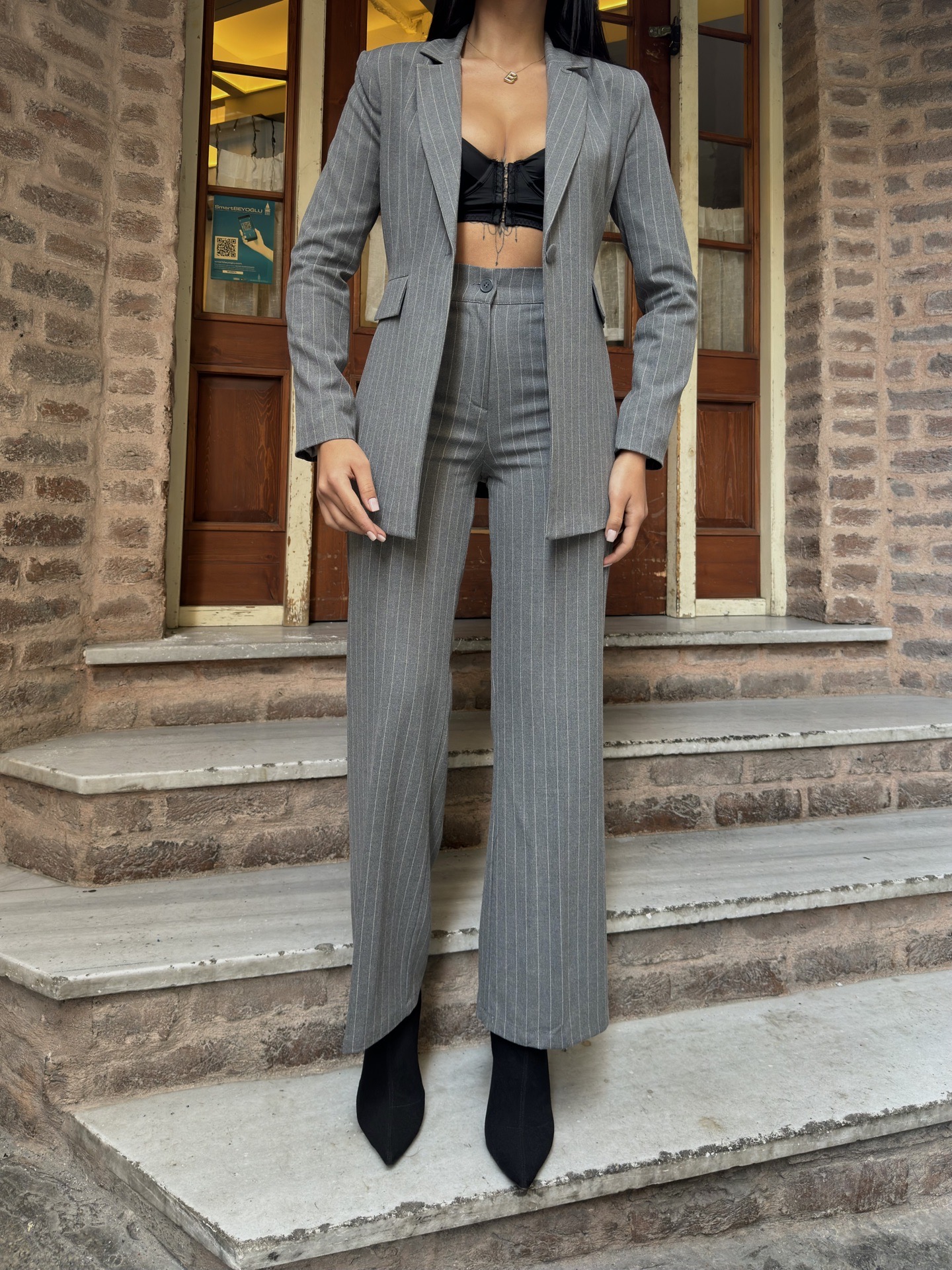 Kadın Düğmeli Palazzo Pantolonlu Takım Elbise